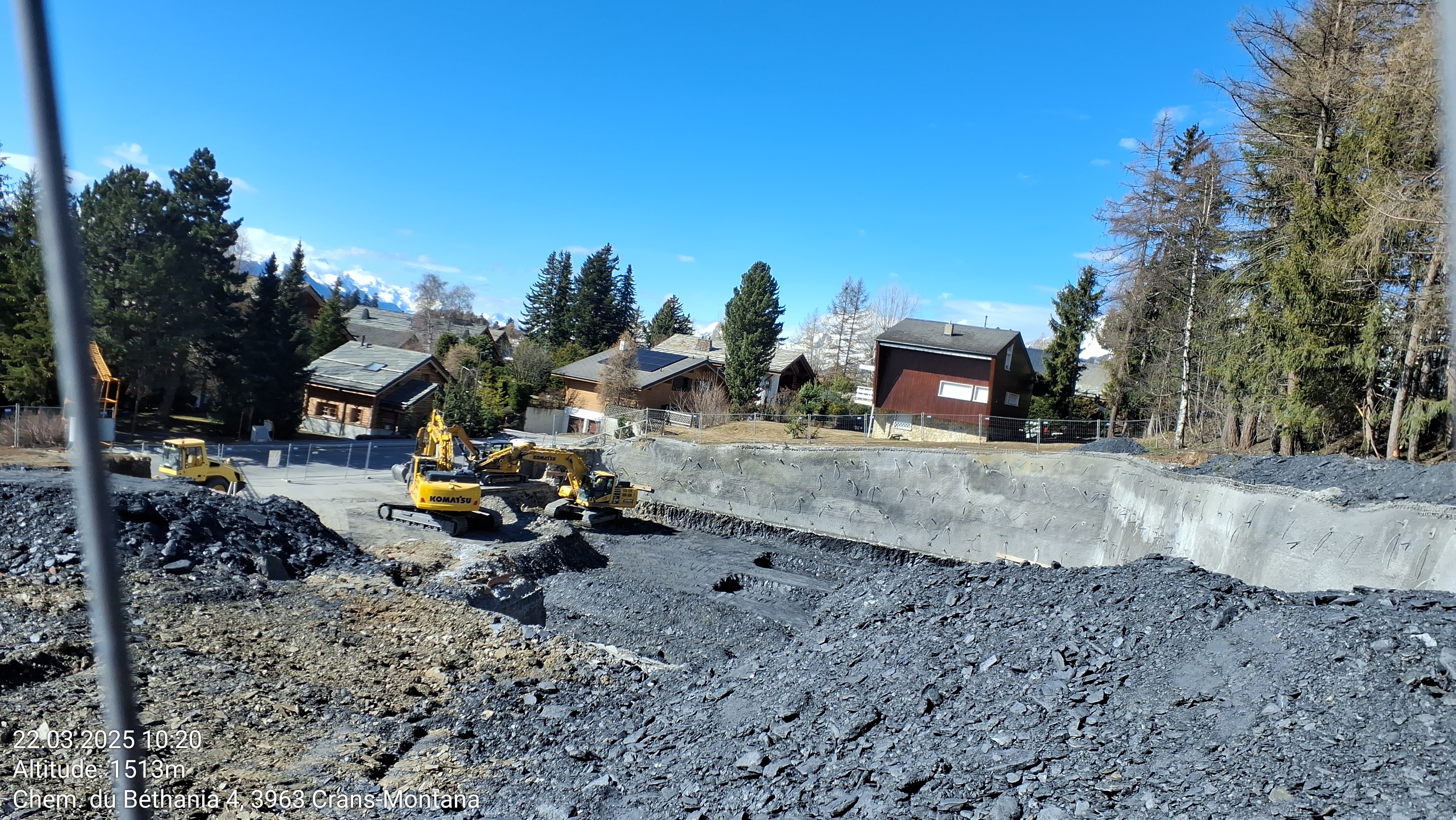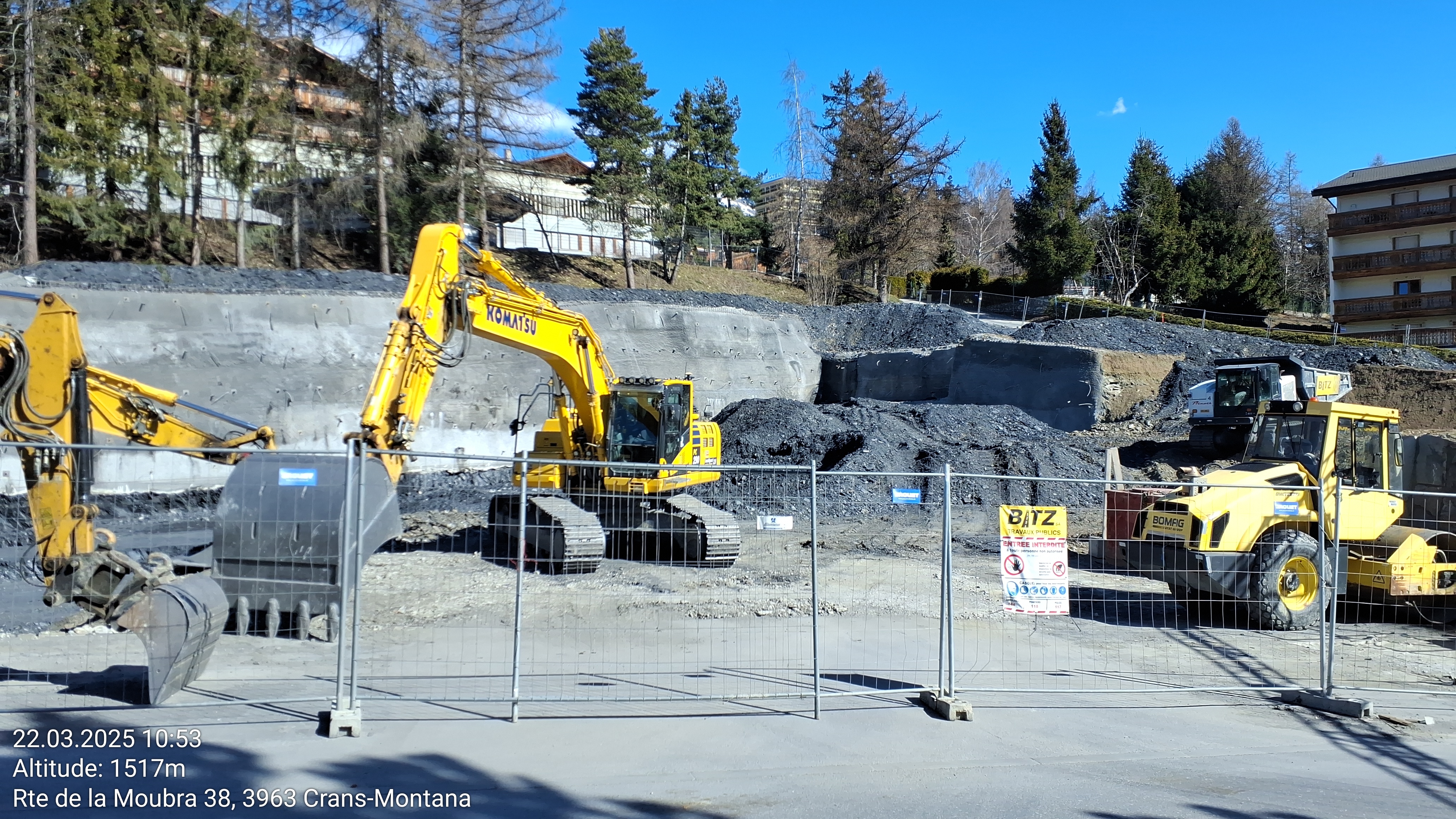 Suite à un séjour de 4 jours à Crans-Montana, je me suis promené dans le village un matin bien ensoleillé. Par hasard, je suis tombé sur ce chantier, où ils sont en train d’excaver le sol pour y construire les fondations d’un nouveau chalet. On y observe clairement la nature de la roche mère qui est en fait une couche d’ardoise, très précieux à l’époque pour réaliser la couverture des toits de chalets. Dommage que de nos jours ce matériau n’est plus utilisé. Cette ardoise est donc vouée à la déchetterie.